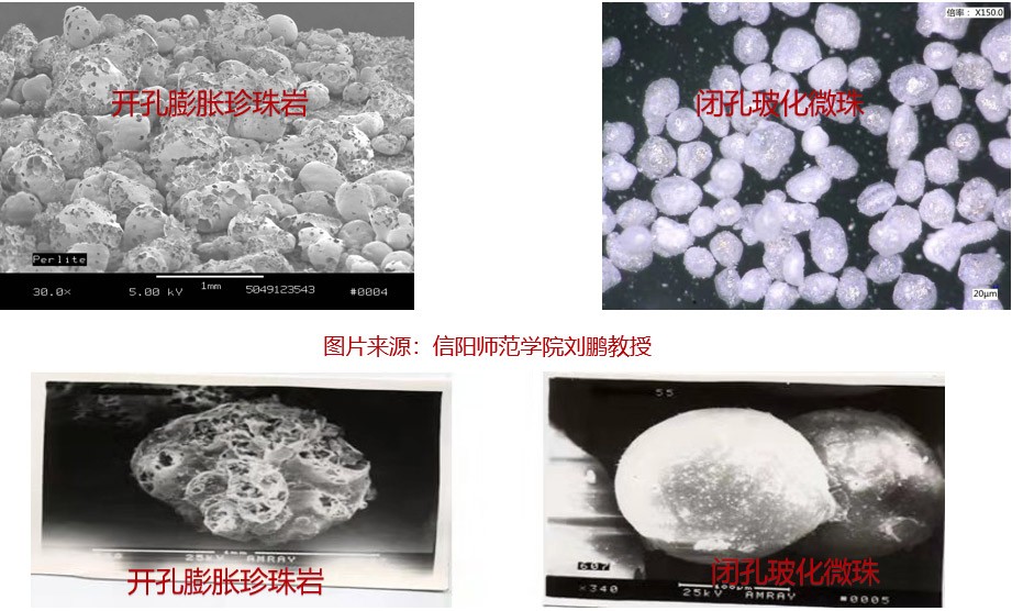 開孔珍珠巖和玻化微珠的微觀結構對比